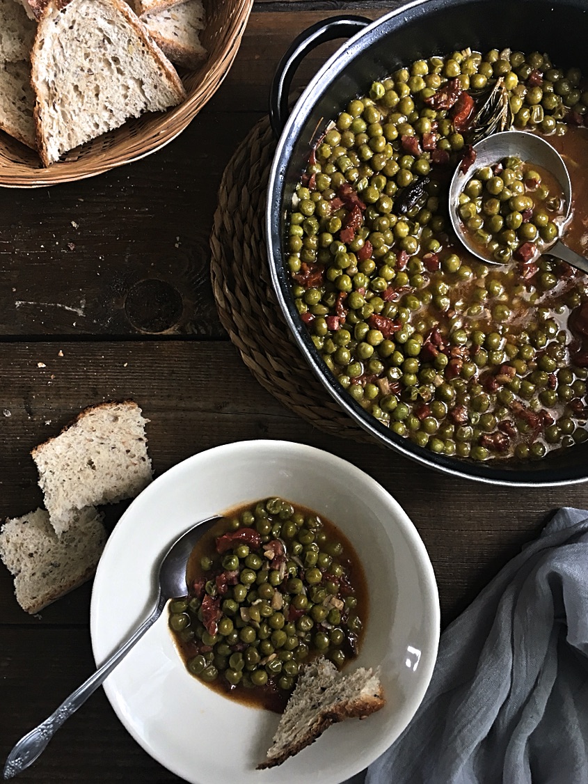 Legumbres, Platos principales, Verduras Jun 01st Receta de guisantes con jamón, tomates secos y pimentón