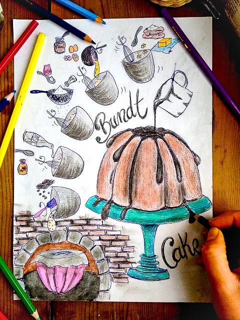 Sí… este bundt es adictivo… así que, como fue imposible hacerle una foto no tuve más remedio que dibujarlo. Los Bundt Cake deben su nombre al molde en el que se hornean, y su elaboración es tan simple como una masa batida a base de huevos, harina y grasa, y finalmente cocida en un Bu
