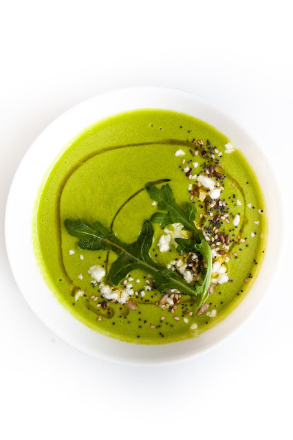 Salmorejo de manzana y rúcula con queso feta