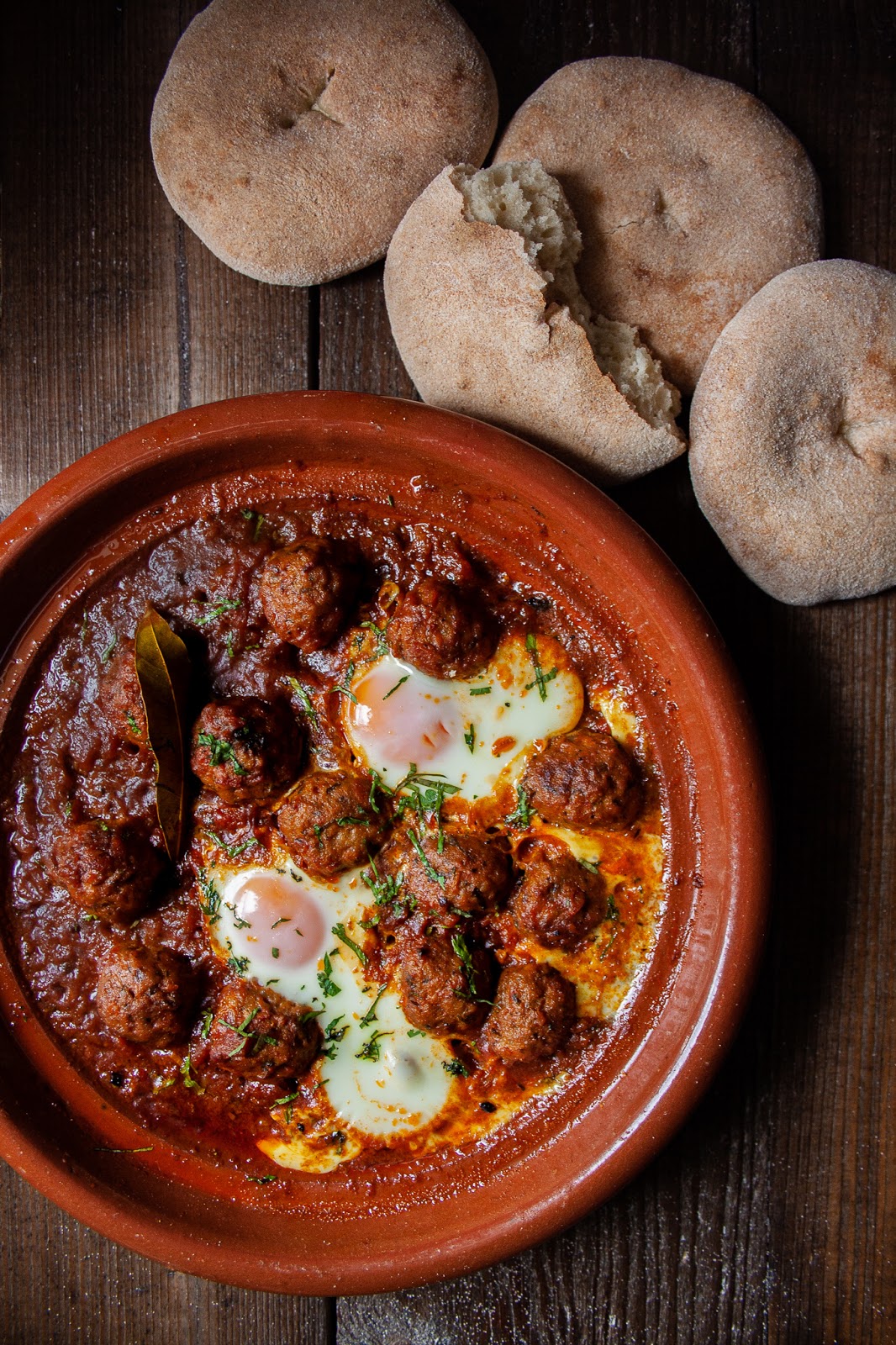 6. Pasado el tiempo, rompe 2 ó 3 huevos y ponlos por encima entre las koftas, vuelve a tapar el tajine y cocina hasta que el huevo cuaje. Sírve esta comida con pan de sémola marroquí, y ya el día será redondo.