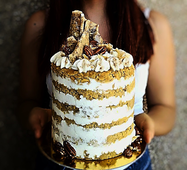 - Alternamos capas de bizcocho y crema de canela.