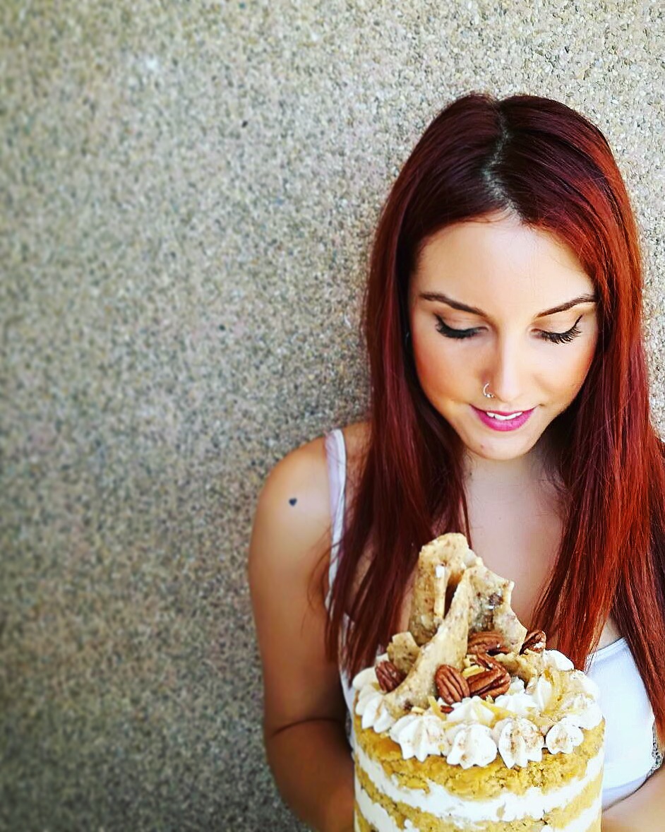 - Decoramos con una manga pastelera con la crema untable, colocamos nueces pacanas y trozos de nougatine.
